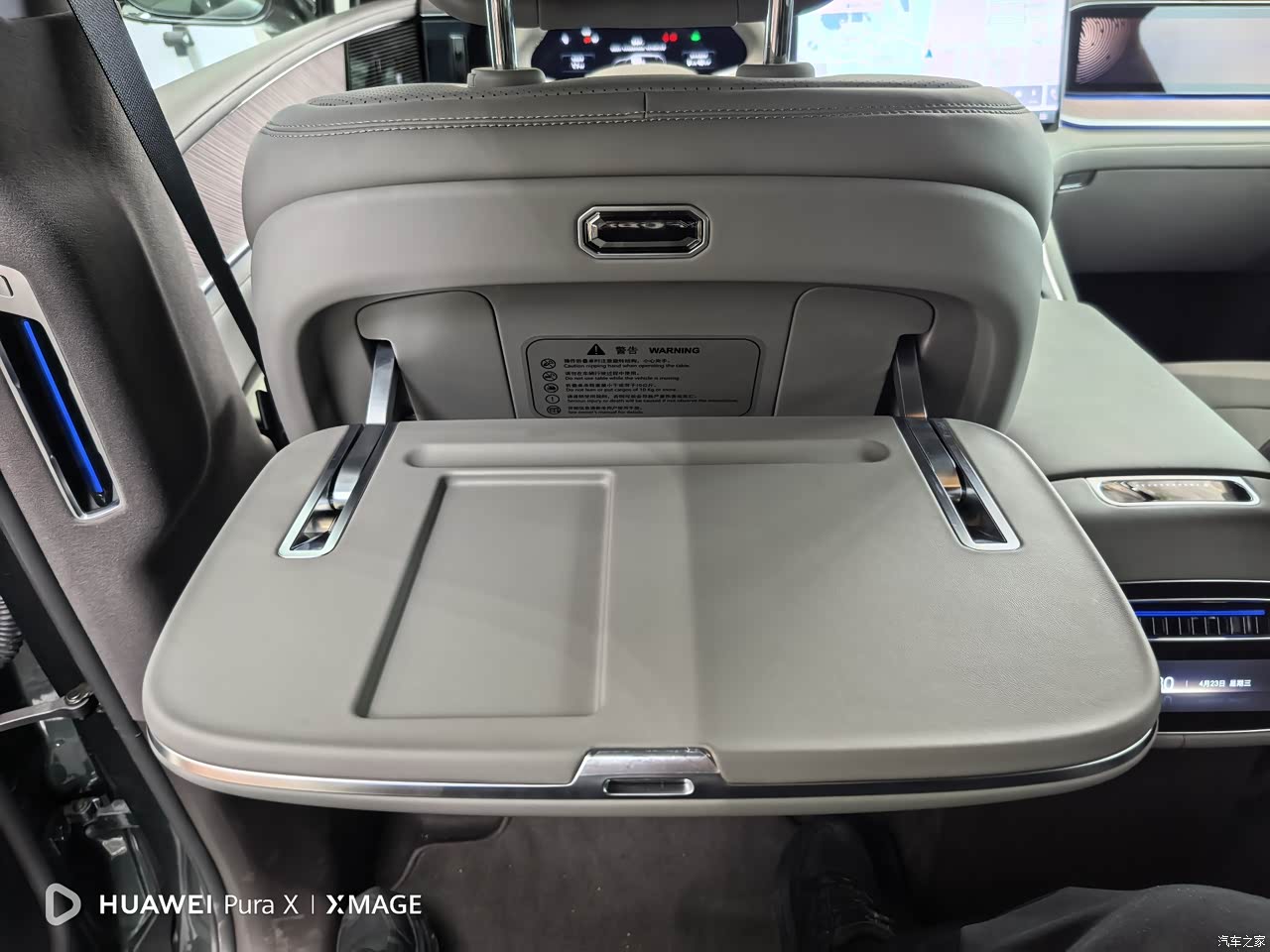 整车能接触到的都是软的,不是软的就是金属材质或者木头材质。包括一些容易磕到碰到的位置,都有软包覆。不愧是豪华品牌定位,为驾乘者考虑的非常到位。 方向盘的按键区域用了不易留下指纹的金属材质,不仅观感更好,按键反馈也做得很好,按下去的感觉很干脆,这点好评。 无线充电区域用了更加耐磨擦的防滑材质麂皮,手机放在上面可以放心地充电,不会到处滑动。 中排座椅也配备了小桌板,感觉比d9的小桌板更加牢固?(也许是装配差异)小桌板可太实用了,我就很喜欢它,可以当做餐食桌啊,办公桌啊都可以,车内空间的多样性在此得到了体现! 另外不得不提一下帝瓦雷音响的罩子,最开始在n7上面是比较亮的金属材质,虽然能较好的体现金属的质感,但是很多车主都反应太反光了,特别是太阳照进车内会很刺眼。n9上面的帝瓦雷音响的罩子就做了很好的设计,给音响罩做了染色的处理,减少了反光强度,说明了腾势是一个懂得收集用户意见的车企,值得点赞!