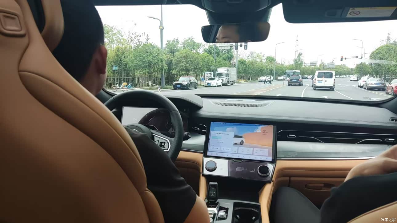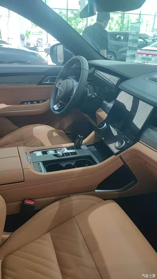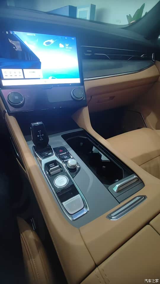 内饰豪华质感,触手可及进入车内,豪华感扑面而来。方向盘与座椅材质均为 nappa 真皮,手感细腻,品质上乘。12.3 英寸液晶仪表盘、12+6 英寸的中控屏,屏幕内置高通骁龙 8155 车规级芯片,操作流畅,响应迅速。车机除了搭载高德、百度双地图外,还有 ar 实景导航功能,驾驶时导航体验超棒。仪表台、副驾驶饰板和门护板均搭配有蚀刻真铝饰板,细节之处尽显精致与豪华,后排遮阳帘实用之外也透露出设计的巧思。