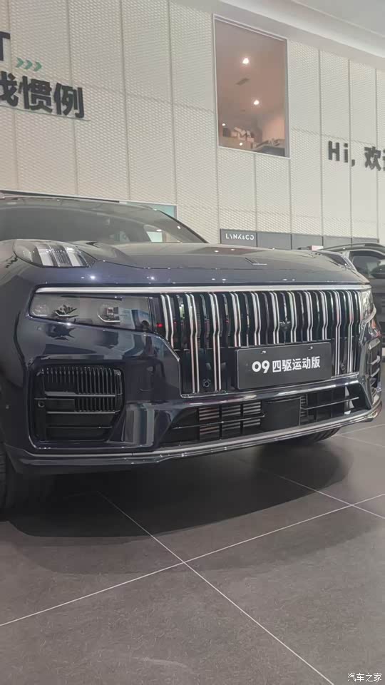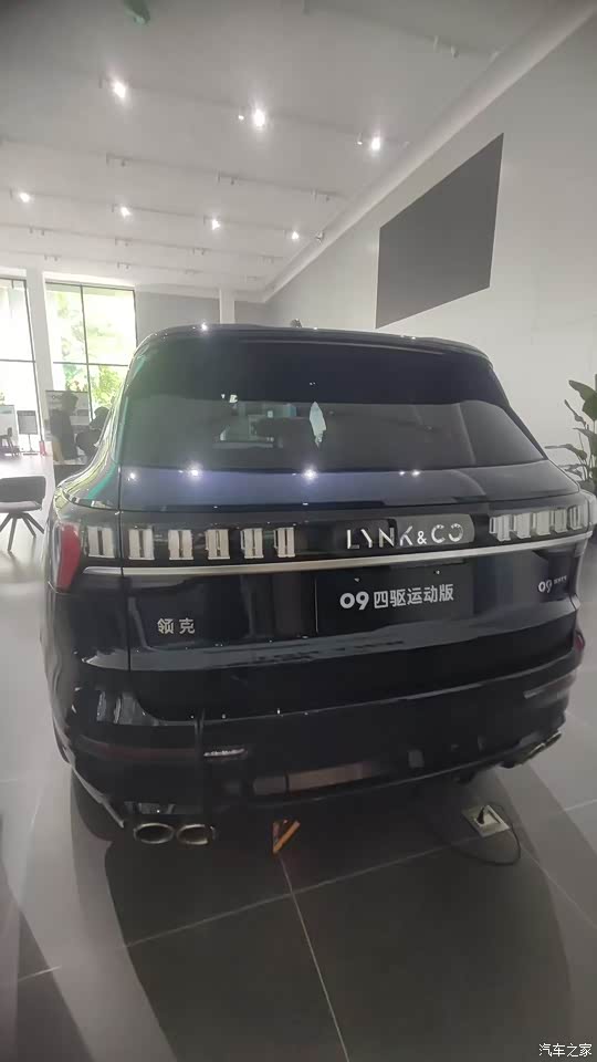 霸气与时尚的完美融合,领克09的外观真的 太吸睛啦 - 独特前脸:北欧极简风,采用直瀑式进气格栅,格栅内镶嵌着细长的镀铬条,大气且精 致。直瀑式大尺寸格栅搭配分体式大灯极具辨识度,开在路上回头率超高 M。车身侧 面线条流畅,前门铰链后方的金属饰板更是 增添了视觉层次,20寸的轮圈与车身比例协调, 运动感十足。车尾的贯穿式尾灯和双边共四出式排气布局,让整车看上去既时尚 又霸气领克家族标志性的分体式大灯,上方 ‘北极之光” LED 日间行车灯辨识度极高,下方矩阵式 LED 远近光灯组照明效果出色。