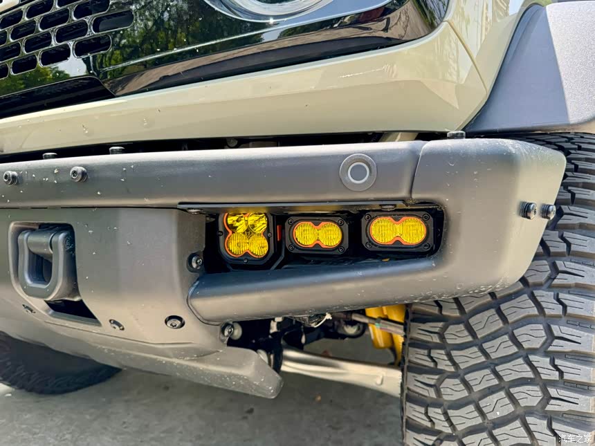 外观方面自不用说,在我的观点中认为是最好看的几款车之一了(个人喜欢的外观还有另外几款,分别是牧马人,英力士掷弹兵以及奔驰G)。 颜色我选择了沙丘白,一种灰灰的米白色,算是符合审美吧。 轮胎方面原厂配备的固特异产的315泥地胎,扎实有力,很硬实,不错。