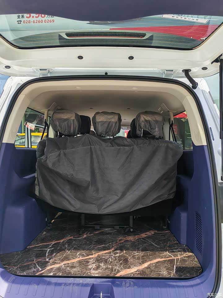 除了乘坐空间宽敞,车内的储物空间也设计得很贴心。中控台下方有个挺大的储物格,放个钱包、文件啥的很方便。车门两侧的储物槽也够大,能轻松放下水杯和雨伞。扶手箱的空间也不错,能收纳不少杂物。后备箱在满载7人的情况下,还能放下几个行李箱或者背包,满足日常出行的装载需求完全没问题。要是放倒第三排座椅,那空间就更夸张了,载货能力超强,不管是家庭采购大量物品,还是小型搬家,都能轻松应对。