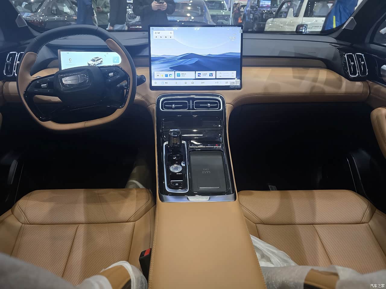 内饰布局方面现在千篇一律都是大屏再加非常宽的中央扶手,博越L也没有例外,这个也没有什么可挑的,但是在我看所有品牌对比的时候,内饰做工,和品控是在这个价位里做的最好的,缝隙衔接的非常好,缝线非常工整,钢琴烤漆加上棕色皮质就是豪华车的感觉,层次感分明,又不失感官的疲劳