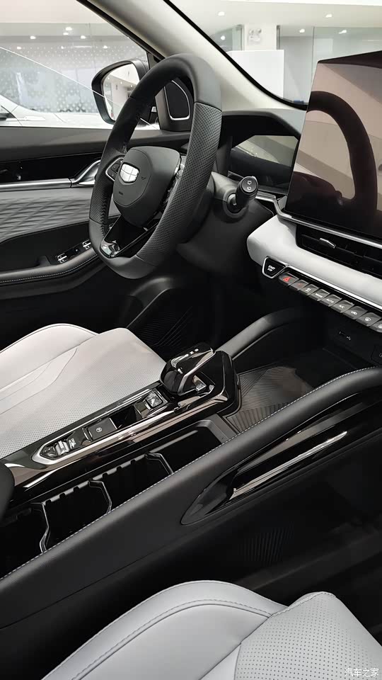 一块大尺寸的中控屏放置在中央,彰显科技感,内饰黑白颜色的交错对视觉颇有冲击感,好有质感