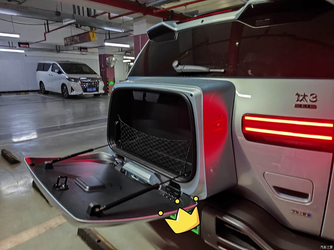 前排视野好,后排空间满意,两米七几轴距的空间做到这样相当可以了,虽然有牺牲部分后备箱,但是我觉得前备箱和小书包的空间足以弥补了。 而且侧开后备箱很帅,平时包放在电动前备箱取放都很有仪式感,能装6呀。