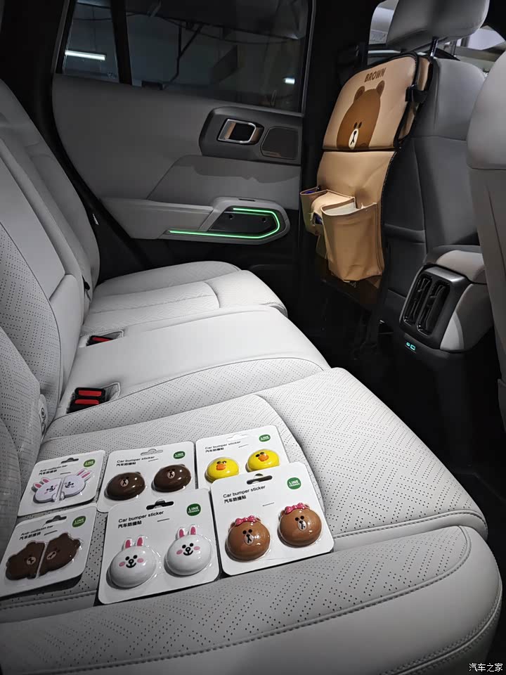 自己装饰了下,两人都是布朗熊爱好者,稍微点缀了一些元素。 银色配白内,越看越喜欢,就是要勤洗车了。 小书包很有个性,也是喜欢这个造型的一个重要点,没有小书包车就有点短了。
