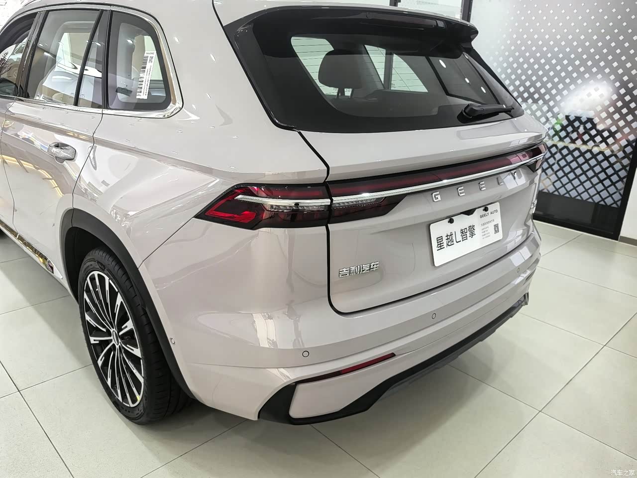 今天去试驾了吉利星越L智擎天宫版,这车外观真的很亮眼!直瀑式中网,镀铬条一镶,看着就大气,还有点迈巴赫的味道 。三段式日行灯超有辨识度,20寸大轮毂造型独特,跑起来特带感。车身线条流畅自然,整体轮廓饱满,看着扎实稳重。车尾贯穿式尾灯,晚上一亮,好看又安全。实车比图片还惊艳,喜欢SUV的朋友真值得去瞅瞅。