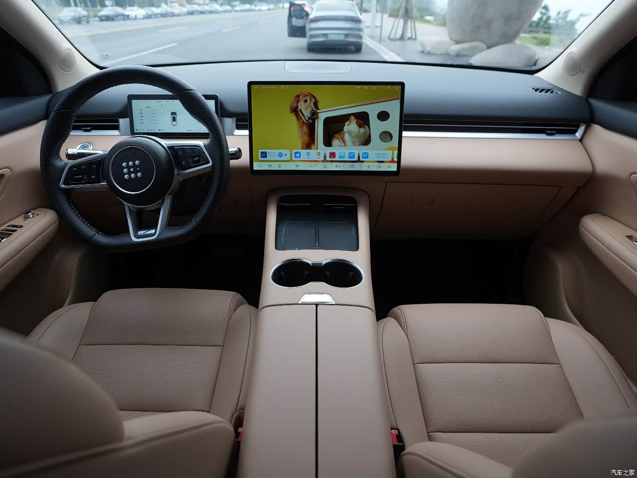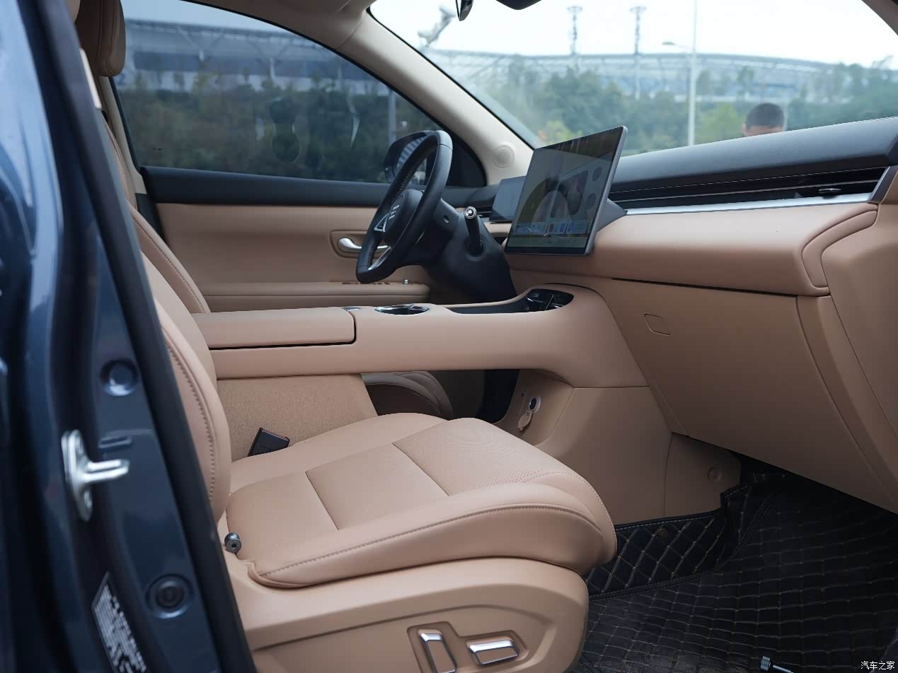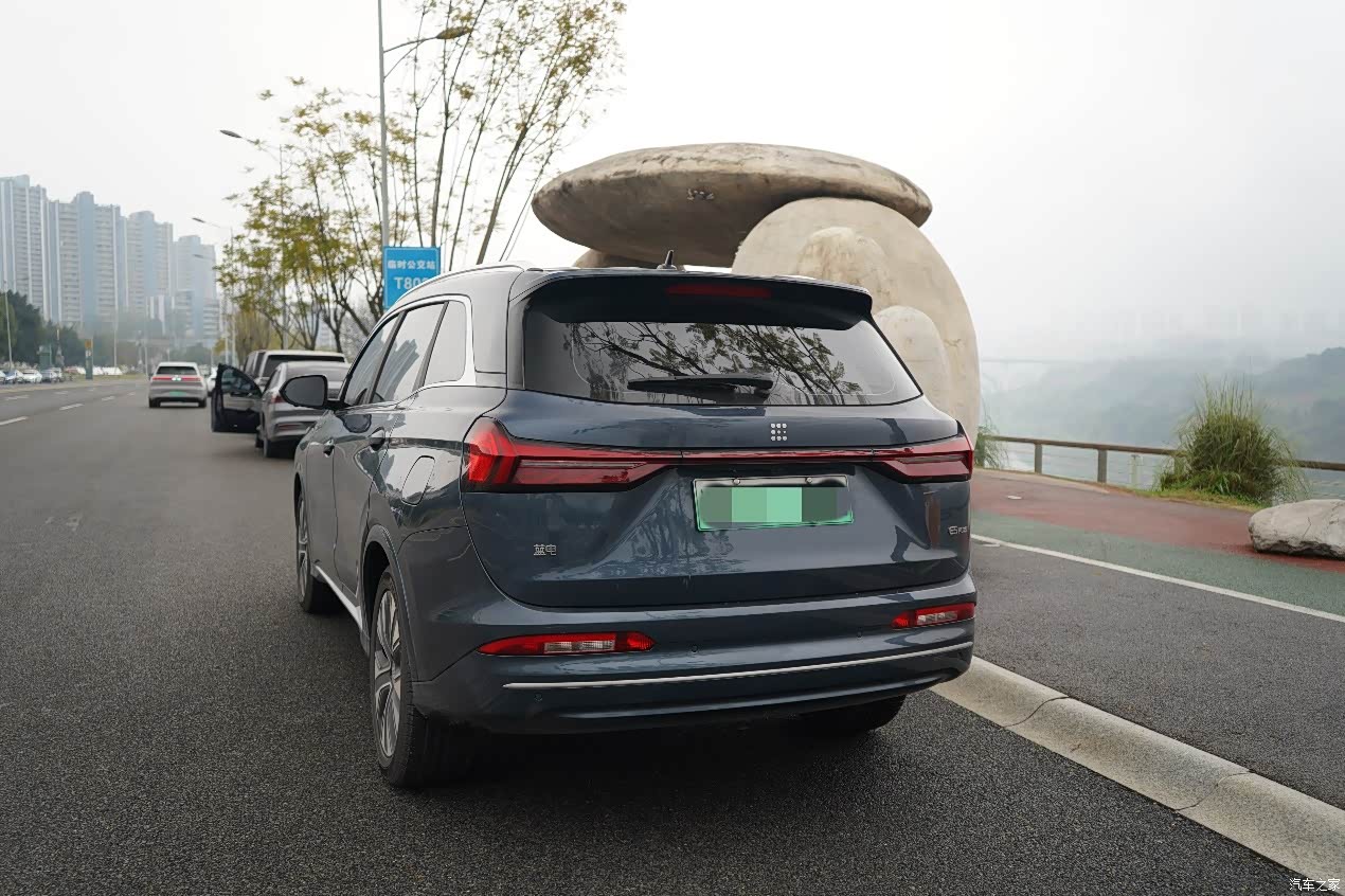 空间表现是蓝电E5 PLUS的一大亮点。前排和第二排的头部、腿部空间都挺充裕的,我身高180cm,坐在第二排还能有两拳多的腿部空间。第三排适合身高165cm以下的乘客短途乘坐,或者放儿童安全座椅也行。储物空间的话,后备箱在7座状态下能放下两个登机箱,放倒之后第三排后空间就很可观了,全家出游的行李一般没问题。