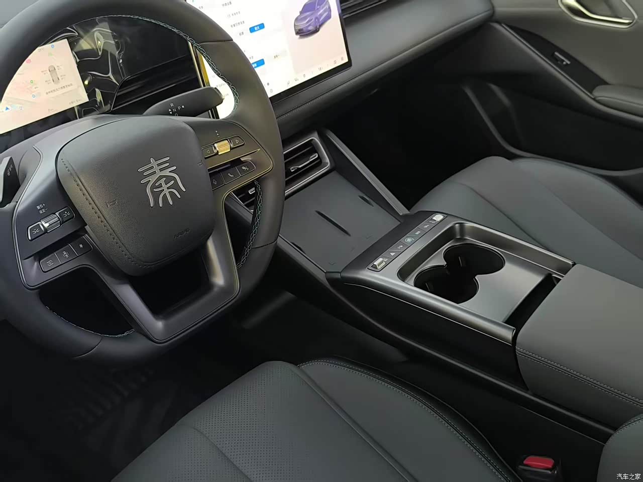内饰设计简约大方,大面积皮质包裹触感柔软,悬浮式中控屏和电子档增添了科技感。晚上开车时氛围感拉满,仿佛置身移动的小城堡。不过储物空间稍显不足,手机、钥匙等小物件有时不太好找到合适的收纳位置。