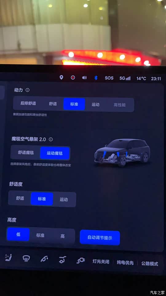 高速悬架调成运动,高度设置为低,开起来还是很稳当的,没有网上说的那种开船感,还是挺灵活的。