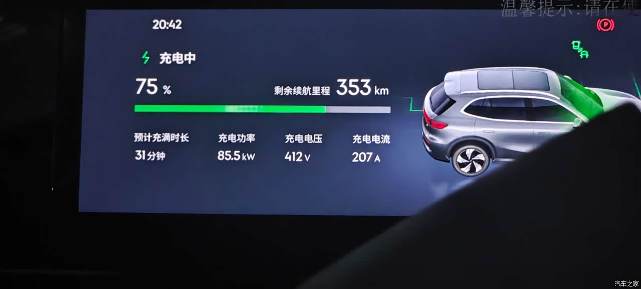续航方面,我们目前设置的是动态续航,满电状态下450公里,跑高速的话基本在300公里左右,一般开200公里就会去充电,出游建议选择200公里以内的旅程,不至于太焦虑