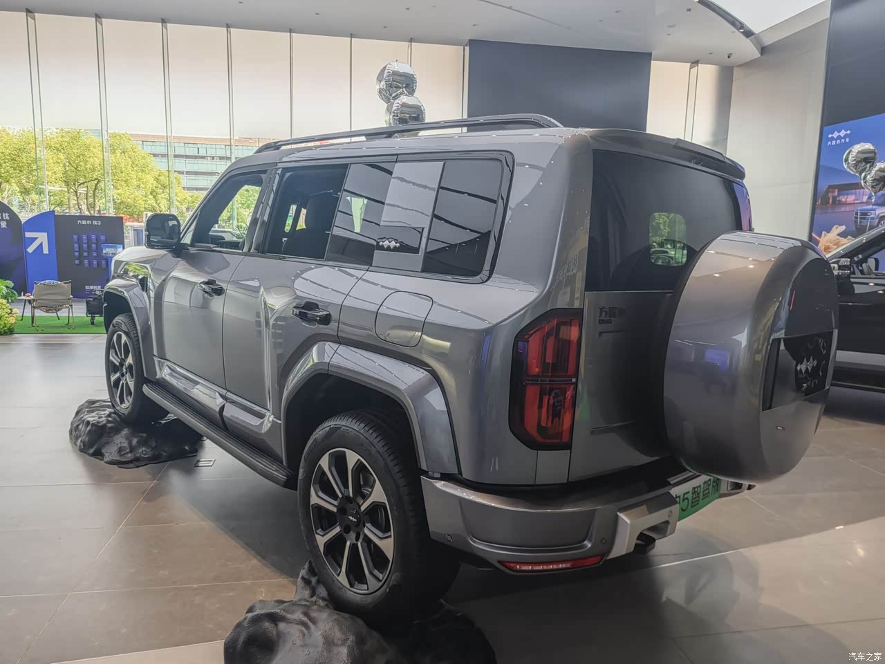 第一眼看到豹5,我就被它“方头方脑”的样子萌到了。前脸像戴了个钢铁侠面具,大灯组亮起来跟科幻片里的飞船似的。侧面的轮眉鼓得跟举重运动员的胳膊一样,大脚(轮胎)踩在地上稳得像泰山。最逗的是后备箱挂着个“小书包”(备胎),不知道的还以为它要出门野营。