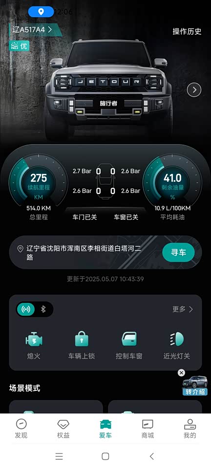 目前一共加了600块钱油,当地油价7.26。里程显示500公里,剩余油量41%。APP显示油耗10.9。应该比这个高一点点。油耗基本满意,毕竟两吨的车这么大,SUV除了带电的就是没省油的.所以最不纠结的就是油耗了。