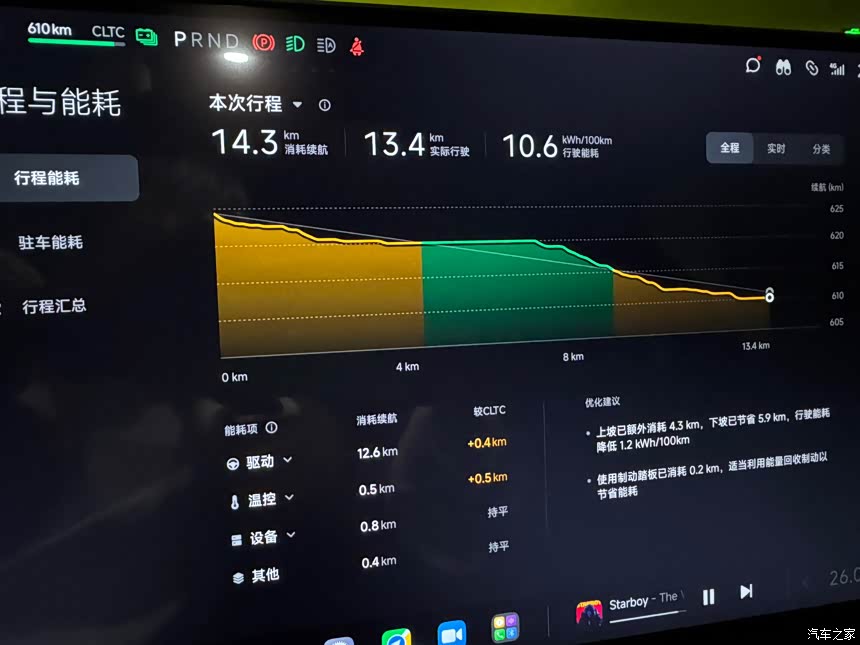 续航方面,官方CLTC续航700km,实际续航能到600km左右,我上班通勤大概是26km,能耗才做到10-13,平稳开搭配低风阻轮胎使用到10的能耗是完全没有问题,13是我开的比较猛的情况下达到13,我开的是80%的能量回收~根据大家自己的驾驶习惯使用哦,高速的话续航大概跟车机预估的差不多吧550km,高速能耗会高一些,毕竟时速快,空调,加上下雨雨刮,全程高速的话能量回收也受不了多少电力,电机持续在输出,能耗大概会达到14左右,好在支持快充,高速充电桩也越来越多了,大家完全可以不必担心续航焦虑,而且电费便宜!按照我的通勤距离大概一星期我会冲一次电。
