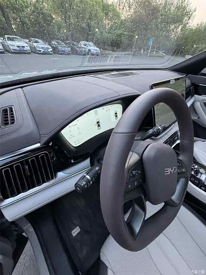 内饰风格偏向简约科技风,中控台采用软质材料包裹质感不错。15.6英寸可旋转中控屏是亮点,支持横竖屏切换,内置DiLink系统,功能丰富(导航、语音控制、OTA升级等)。不过部分按键采用触控设计,盲操时不如实体按键方便。座椅采用仿皮材质,填充柔软,长途乘坐舒适性良好。