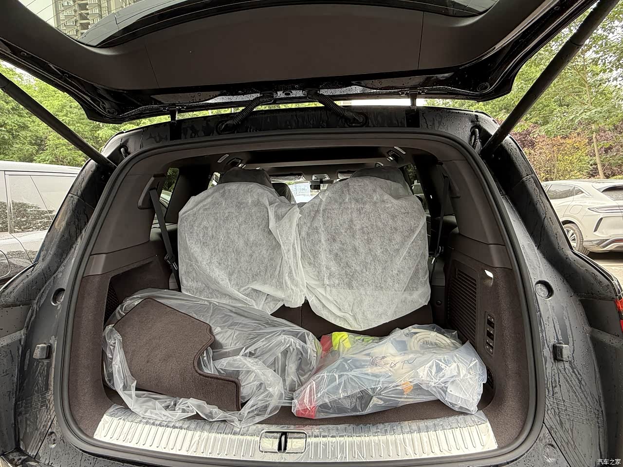 需要放大东西的话就要将座椅放到,后备箱不是很大,24寸行李箱堆叠两个没有问题,满座的话座位不会拥挤,乘坐空间很舒服。最近也是用了几天,说实话储物空间真的很大,尤其是前排的储物空间,能放水杯和杂物,家用完全没有问题。