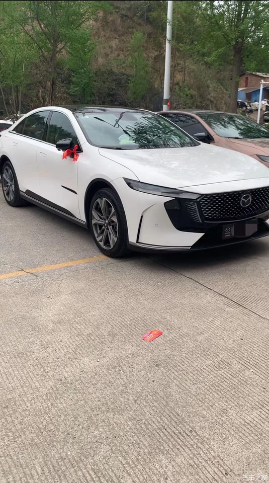 珠光白YYDS:实车比图片更高级,阳光下有细微金属颗粒闪烁,耐脏且显大 经典+科技融合:无框车门、隐藏式门把手、贯穿尾灯很吸睛,但前脸依然保留马自达家族设计,老车主一眼能认出来。