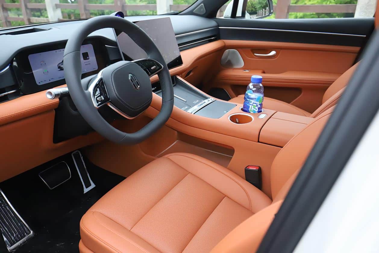 赤茶橘内饰选装得很值,质感和豪华感都在线。舒云座椅的10层叠层设计坐着很舒服,前排通风、加热和按摩功能在不同季节都很实用。副驾电动腿托是个惊喜,老婆坐副驾终于能好好休息了。不过新车内饰味道有点大,散了一周才基本消除。