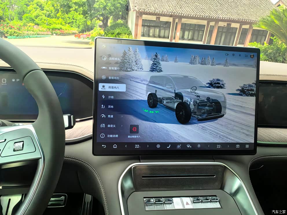2.0t插混➕三电机动力系统,动力强劲的很,零百加速3.9秒,推背感十足,易三方和云辇A智能空气悬架,过减速带或者坑洼路面的时候,减速效果非常好,车内很平稳,完全没有颠簸感,方向盘转向精准,这么大的车开起来一点不费劲。