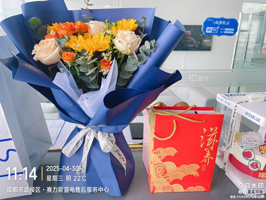 在这个风和日丽的春日,我像往常一样,驾车来到成都和顺道蓝电用户中心,参加车辆春季免费检测活动。本以为这只是一次常规的车辆检查,却没想到,在这里我收获了一份足以温暖整个季节的惊喜。 走进用户中心,工作人员热情而专业的态度,让我瞬间有了宾至如归的感觉。他们有条不紊地对我的爱车进行全方位检查,免费添加玻璃水,检查底盘紧固所有螺栓,还免费充电,每一个细节都不放过,那份认真负责的劲儿,让我对蓝电的售后保障充满了信心。 就在我等待车辆检测结果的时候,奇妙的事情发生了。服务站的工作人员突然捧着鲜花、蛋糕,笑意盈盈地朝我走来。原来,他们在核对客户信息时,留意到当天恰好是我的生日。在忙碌的工作中,他们竟还能分出心思关注到这样的细节,这让我既意外又感动。 看着精美的蛋糕,闻着鲜花的芬芳,那一刻,我心里满是温暖。这不仅仅是一份生日大礼,更是蓝电对用户满满的关怀与重视。蓝电汽车,不仅以卓越的品质为我带来了出行的便利,更以这种贴心入微的服务,让我感受到了家一般的温暖。 在这个春天,这份来自蓝电的惊喜,如同一场及时雨,滋润了我的心田。我深知,选择蓝电,不仅是选择了一辆车,更是选择了一份长久的陪伴与关爱。未来的日子,愿与蓝电继续携手同行,在每一段旅程中,都能收获这般美好的感动。