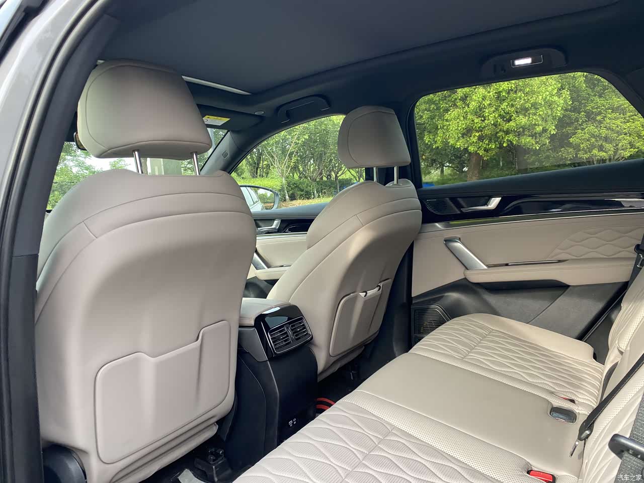 车内的储物空间设计得比较人性化,尤其是前排,杯架、门板储物格、中央扶手箱等都很好用,手机、钱包、水杯这些随身物品都能找到合适的位置安放。后排乘客也有独立的杯架和储物格,考虑得比较周到。