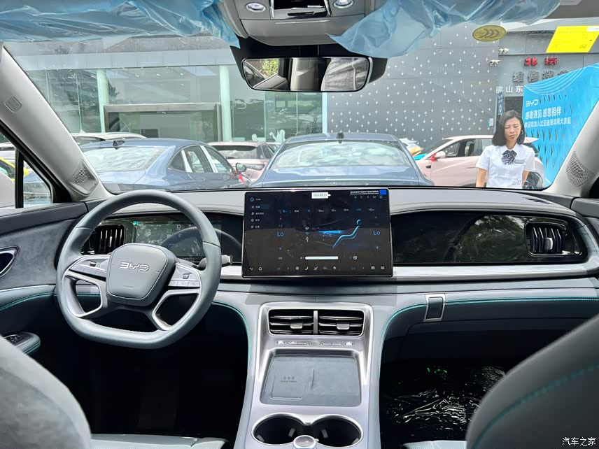 中控台上那个贯穿的黑色饰板看起来真的很高级。15.6英寸的悬浮式中控屏操作起来特别流畅,搭载的DiLink 100智能座舱系统,而且支持AI全场景语音交互,用起来很方便。方向盘是四辐式设计,手感不错,怀挡式换挡操作起来更顺手。