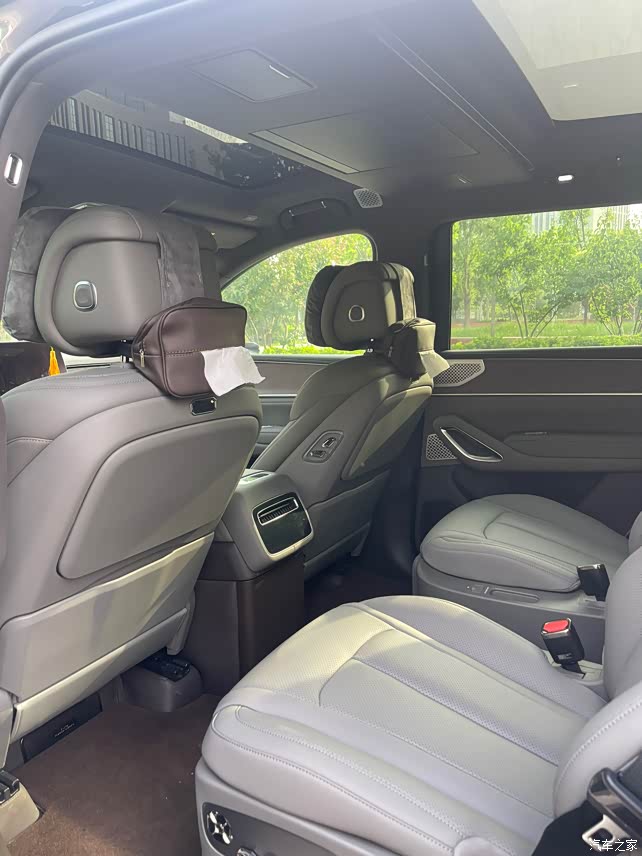1. 前脸设计:方正硬朗,彰显力量感 “顶天立地”设计语言:前脸采用封闭式面板,垂直切面与平直线条结合,营造出如建筑般稳固的视觉效果。AGS外置式主动进气格栅巧妙隐藏于前脸下方,兼顾功能性与美学,优化散热与风阻(关闭时与前脸融为一体,打开时形成悬浮效果)。 2. 侧面造型:稳重大气,细节彰显豪华 车身遵循1:2上下比例,车窗与门板线条平直,营造稳重的视觉效果。前后轮眉采用双层拱形结构,灵感源自建筑拱桥,搭配22英寸密辐轮毂及亮黄色刹车卡钳,兼具力量感与运动风格。隐藏式门把手、电动伸缩侧踏板、电吸门等配置,提升使用便利性与仪式感。 3. 矩阵光辉尾灯好评,灵感源自中国传统建筑窗棂与现代地标,采用几何切割与间断式灯带设计,点亮后具有极高辨识度。尾灯中央嵌入立体发光LOGO,进一步强化品牌特征。 4. 车身尺寸与整体气场,长宽高分别为:5258×2030×1830mm,轴距3125mm,超越竞品理想L9和问界M9,营造出媲美路虎揽胜的庞大气场,强化视觉冲击力。