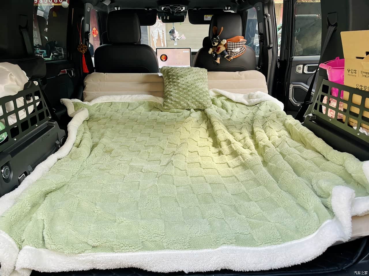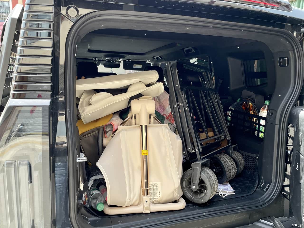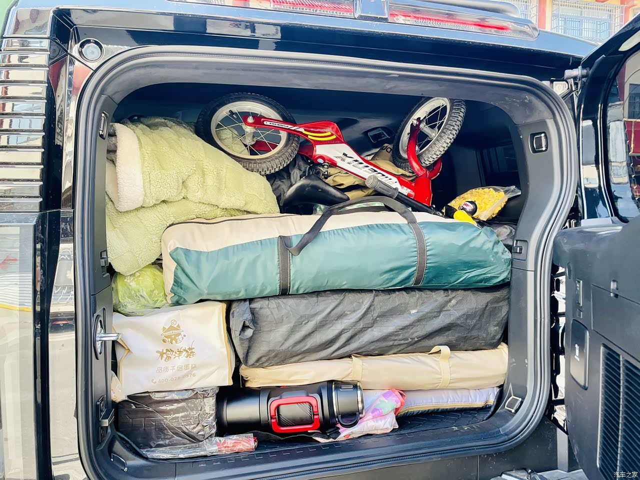 车内的空间还是很充足的,后备箱可以放下露营所用的全部设备,侧开门式设计十分方便物资的搬运。几次露营全部的物资都放在了后备箱里,实践证明十分方便。二排座椅空间充足,腿部空间比较大,放平之后相当于一张比较大的床,床车旅行说走就走。