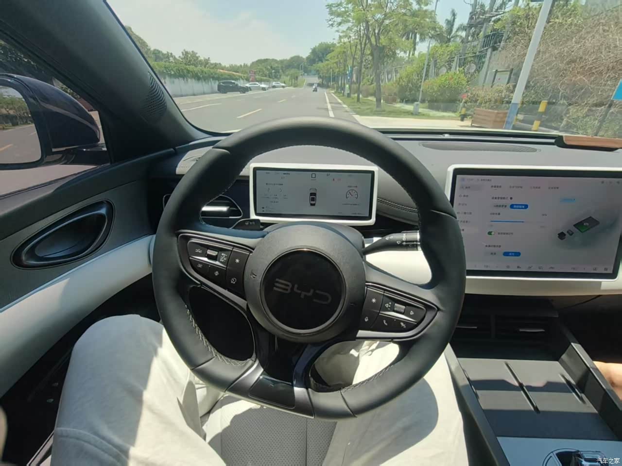 我买的是海豹06dmi低配的版本,我个人买车主要是为了旅游,先说说感受吧,外观方面没什么可以挑剔的,侧面造型的话很犀利,唯一缺点就是前脸过于圆润,前脸的外观到中网如果能够设计得更加犀利,那这车一定会有更多人喜欢。网上很多人都在吐槽他的前脸像鲶鱼,我个人给中网和车标后视镜做了黑化,所以整体看起来协调了不少。 内饰的话我选了个白色的,淡蓝色的灯光设计搭配白色的内饰几乎接近完美,晚上进车的时候即使没有氛围灯也很有高级感 驾驶体验,目前来看这车的驾驶体验确实无可挑剔,因为家里没有停车位,所以把它当作一辆油车开,市区的话百公里油耗基本在4个以内,把它当油车而不买油车的原因是因为想体验电车的功能,车机流畅得像另一部手机,甚至可以玩游戏看电影,这是我没买电车之前没有想到的。