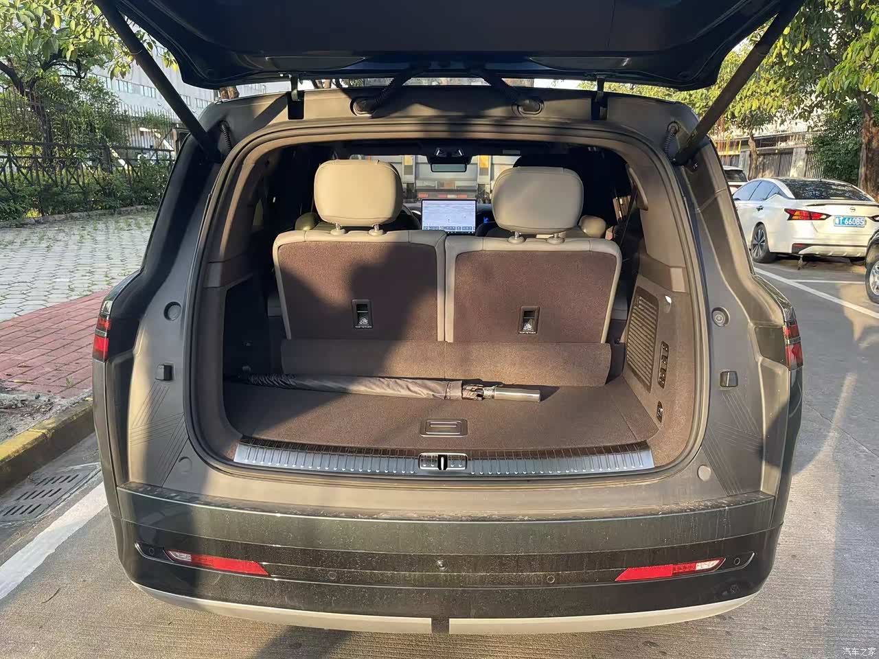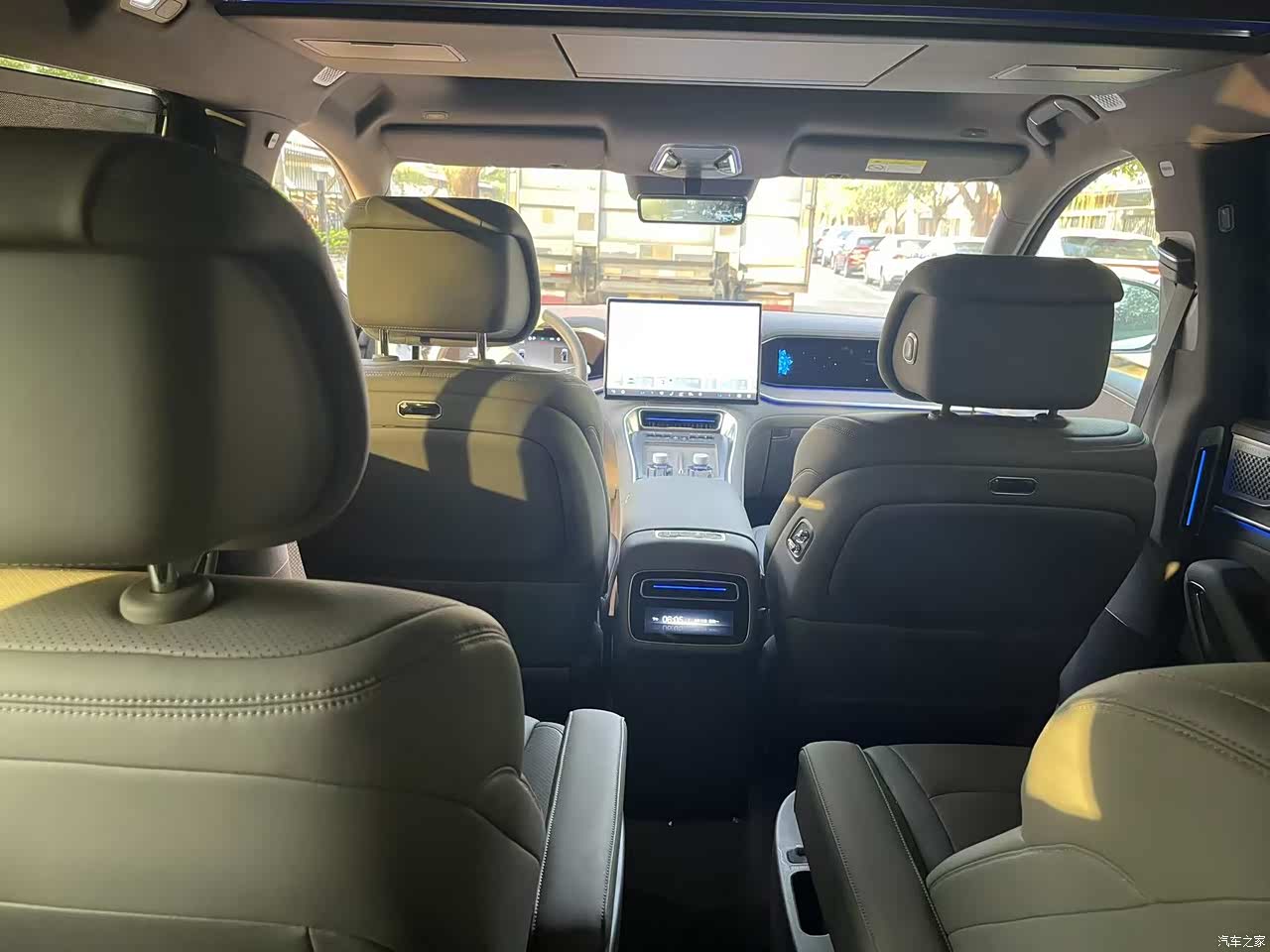 座椅舒适性没得挑,前排座椅带加热、通风、按摩,跑长途的时候开按摩功能,腰背舒服得能睡着。第二排是两个独立座椅,腿托、小桌板、娱乐屏全配齐了,我媳妇儿坐在后面追剧,说比家里沙发还舒服。储物空间设计挺贴心,后备箱第三排不放倒的情况下,装两个行李箱加一堆零食玩具没问题。最绝的是前排座椅背后有个小挂钩,挂个奶茶袋子特别稳,这个细节必须点赞。