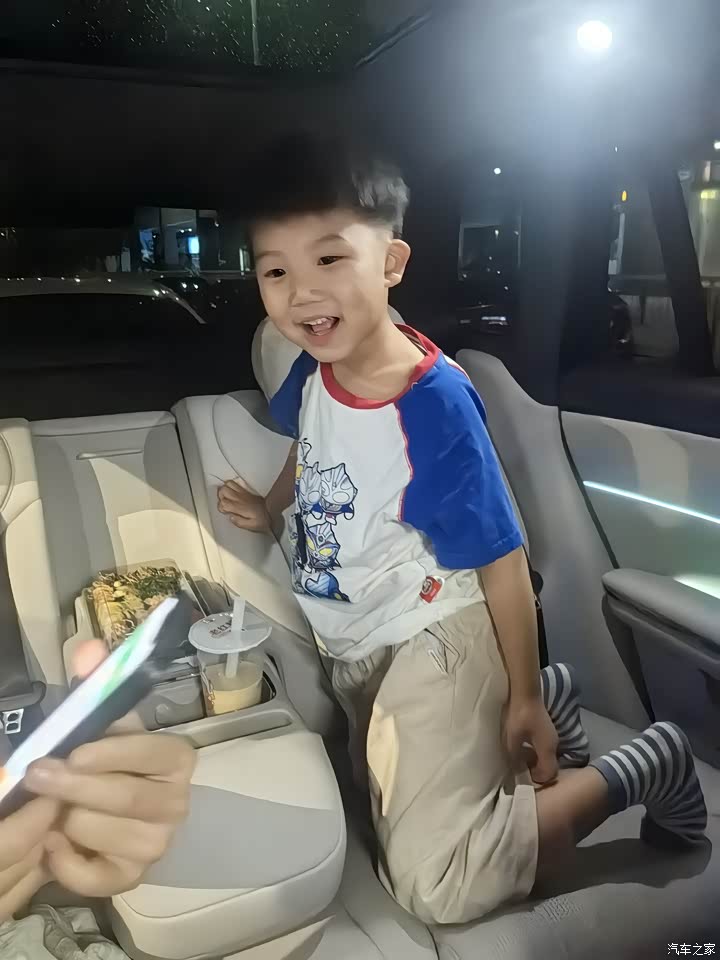内饰我选的是白色的,真的不怕选错的颜色,不要怕脏,车上备了湿纸巾,脏了马上擦掉就好了,每次孩子一上车就想打开后排电视看,还可以前后排一起看同一个节目,这个真的很好!