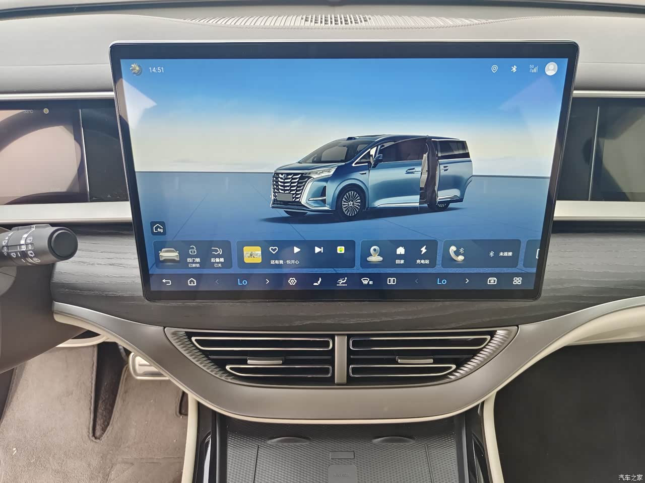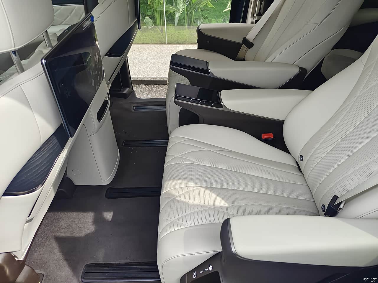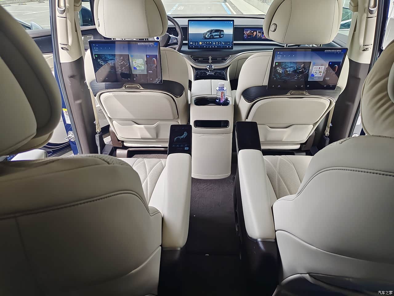 整体运用了很多比亚迪和奔驰的元素,营造出高级感和豪华感。而且采用钻石切割前脸,增加了主动式进气格栅。车身尺寸方面具有优势,车长5250mm,轴距3110mm,是一款中大型MPV,站在旁边会感觉是一个庞然大物,车内空间十分奢侈。 尾部造型设计简洁,上方小尺寸的扰流板设计精致。采用贯穿式的尾灯组,且内部做了熏黑处理,有效地拉伸了整个尾部的横向宽度。下包围部分采用较多的亮色镀铬条修饰,增添了尾部的豪华感。