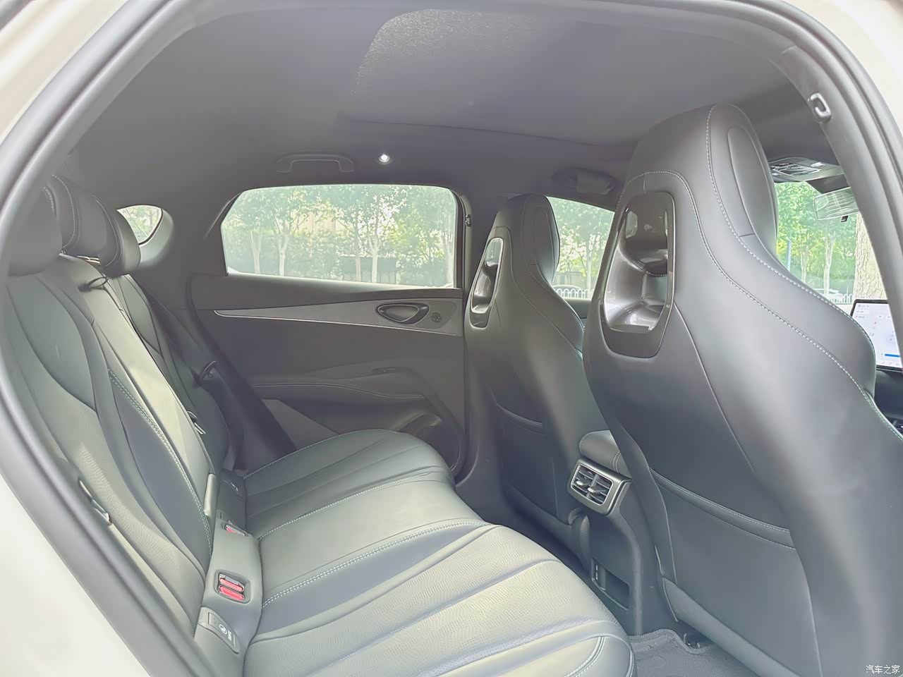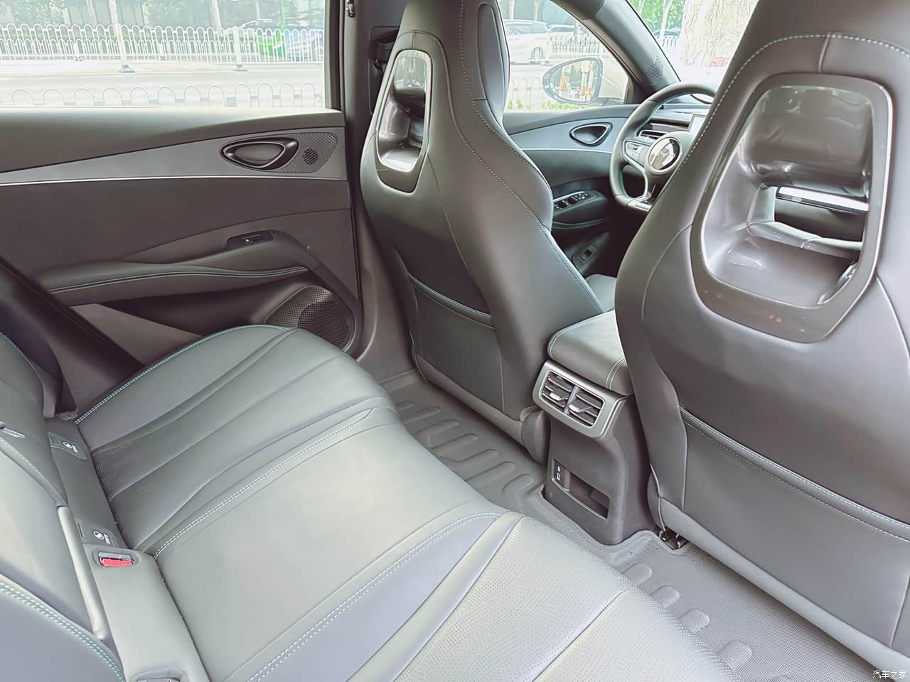 平常坐前头开车的时候空间还是挺友好的,不影响腿部伸展以及伸懒腰之类的需求,但是坐到后排的时候就能感受得到腿部空间不如前排大,所以会有一些拘束感。