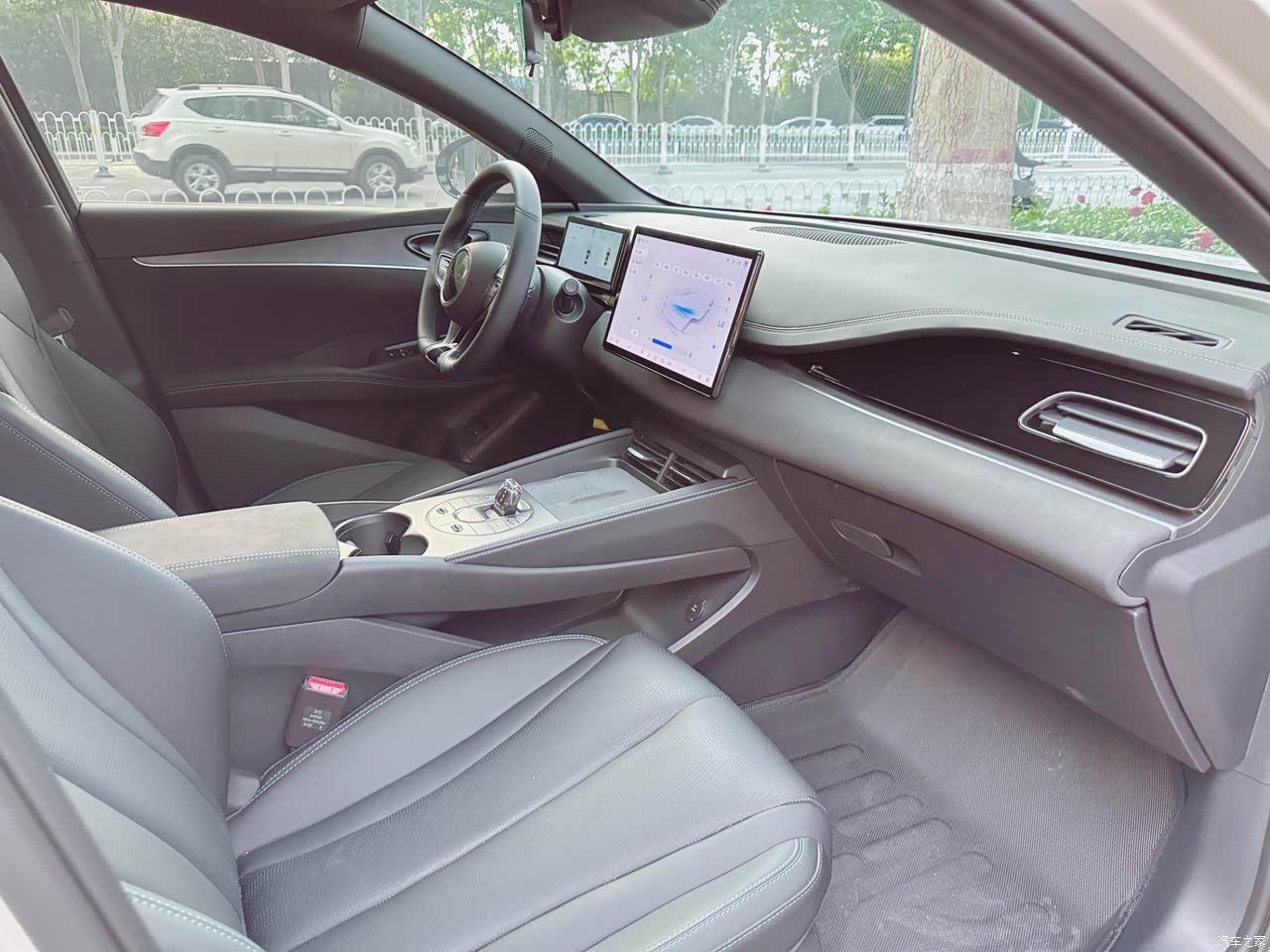 首先就是空间的问题,因为我的个子比较高,而且平常有撸铁的习惯,身材也比较壮,坐在后排就显得腿部空间稍微有一点小,其次,我对这个中控的兴趣还是挺高的,但最近感觉左右滑动的速度比较快的时候屏幕好像有一点掉帧,跟手机肯定是比不了的,毕竟手机是高刷。