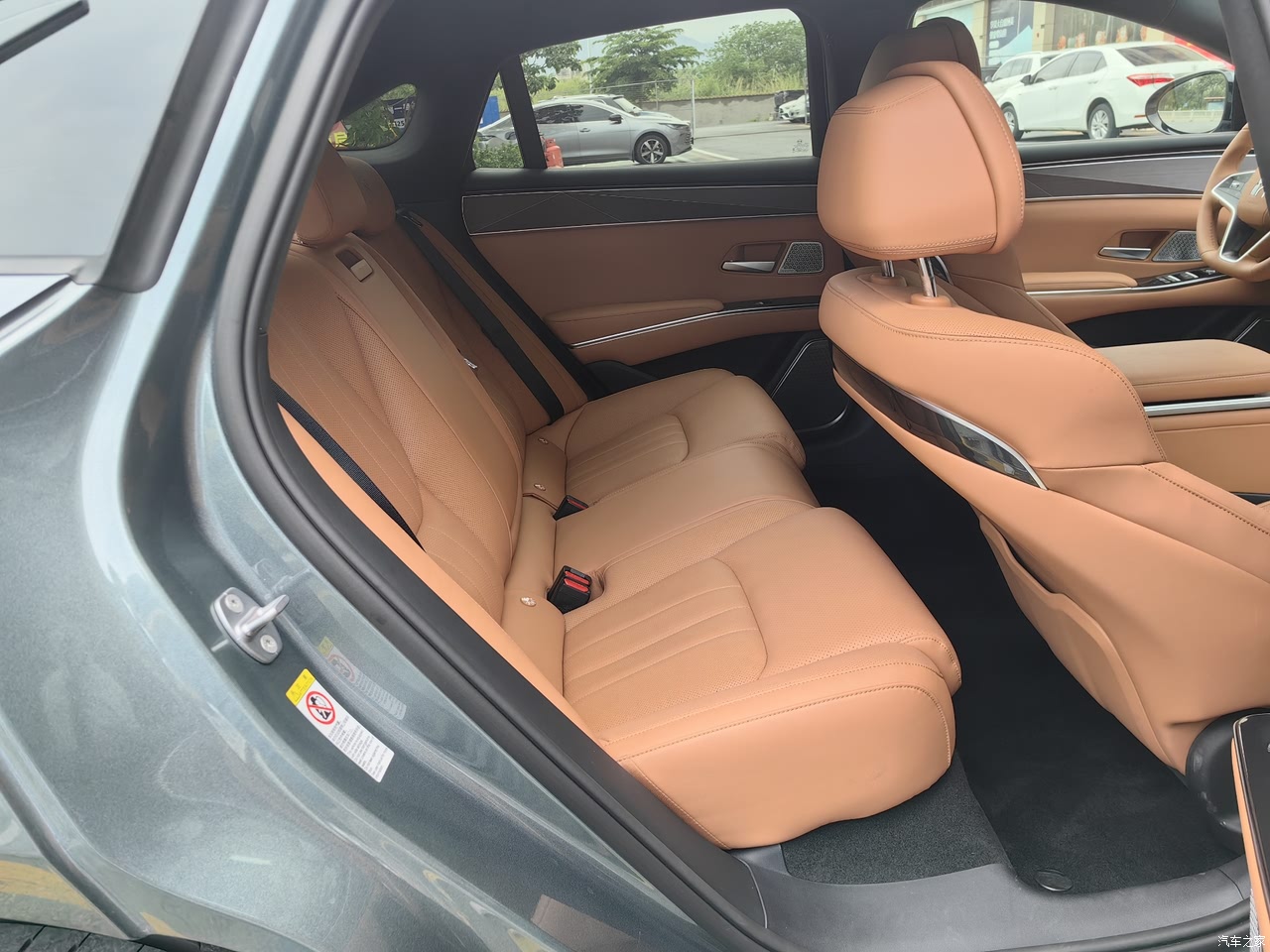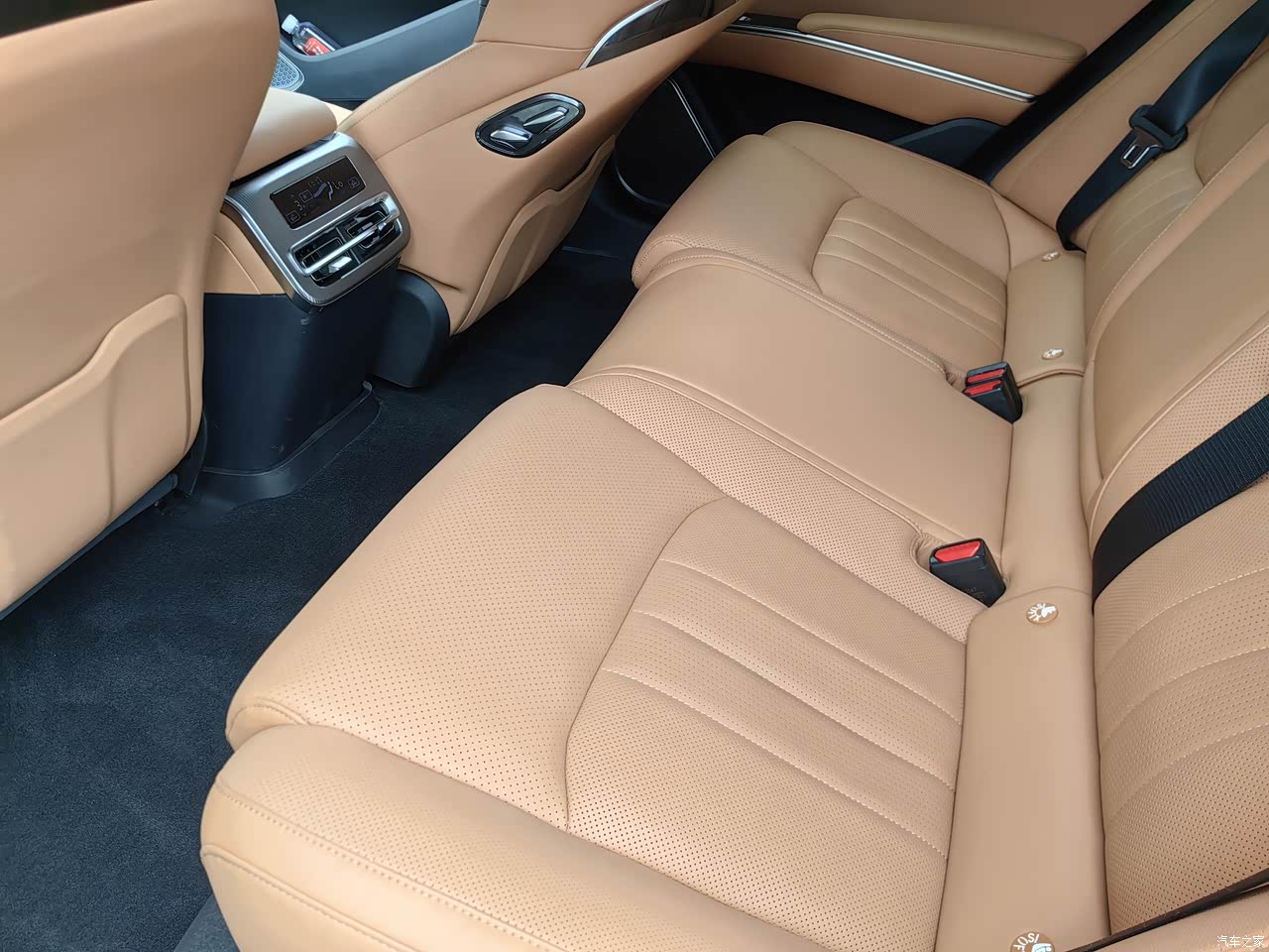 前排空间:我身高180cm,座椅调至最低后头部仍有近2拳余量,方向盘和踏板角度可调范围大,能找到舒适驾驶姿势。 后排空间:腿部空间是最大惊喜!后排乘客膝盖距离前排座椅超过3拳(约30cm),甚至能轻松翘起二郎腿。横向宽度足够容纳3人,但中间地台虽有凸起(约10cm),好在高度较低,对中间乘客脚部空间影响不大。 座椅设计:长途乘坐时能找到一个半躺的舒适姿态,配合独立空调出风口和USB充电口,后排乘客的体验感不输前排。