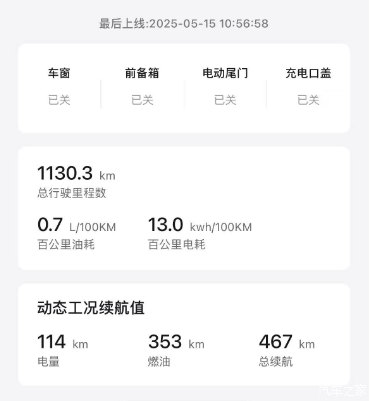 从提车到现在,已经行驶了 1130.3 公里,我只加过一次 92# 油,花费 168 元(而且还没用完,表显还能纯油续航353公里),其余基本都是靠充电续航。我小区装的充电桩电价很便宜,谷电0.33 元一度电。就按这个电费来算,纯电跑一公里的电费成本也就5分钱,相比燃油车,省了太多。星纪元还有充电预约功能,我们这10 点后谷电 0.33 元 / 度,用车辆的预约充电功能超方便,不用熬夜等充电,设定好时间插上枪到点自动充电。