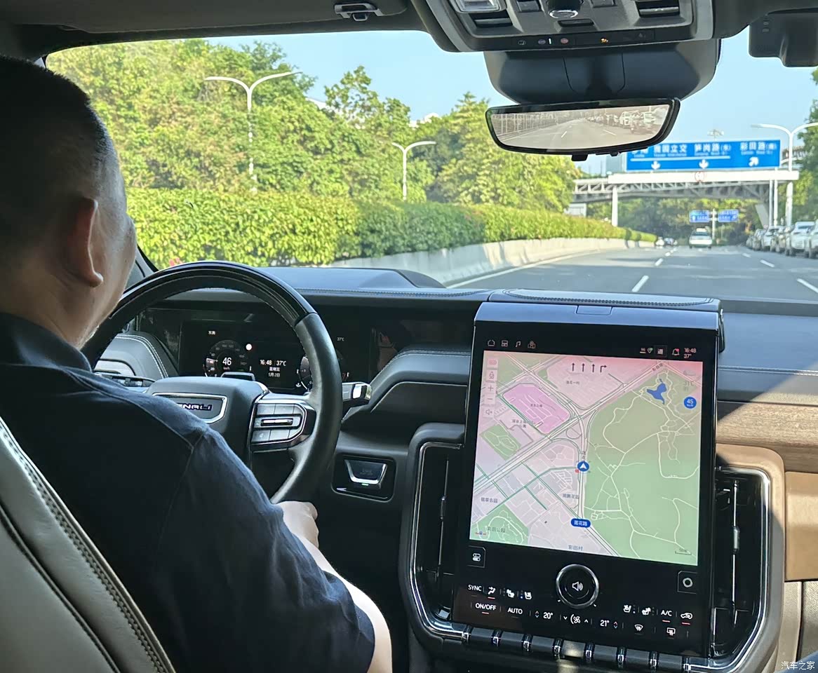 围绕着深业上城周边道路试驾了10公里,育空2.7T涡轮增压发动机能迸发出500牛米的最大扭矩,加速力十分澎湃,配备10AT变速箱,动力如丝般顺滑。因试驾路况以城市快速路为主,没有体验分时四驱和多种驾驶模式等适合越野的工况。车身尺寸很大,但配备了360影像系统,在一些窄小道路转弯入位也毫无压力。