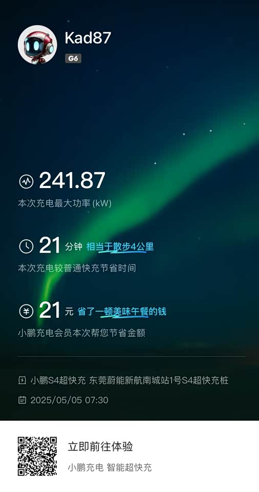 电池续航我习惯采用WLTP,充满电显示488Km,续航达成率都很高。另,2025款G6在小鹏自营的超充桩上的充电效率是真高,能大大缓解续航焦虑,当然有条件安装家充的,还是建议安装,用电成本是真低~