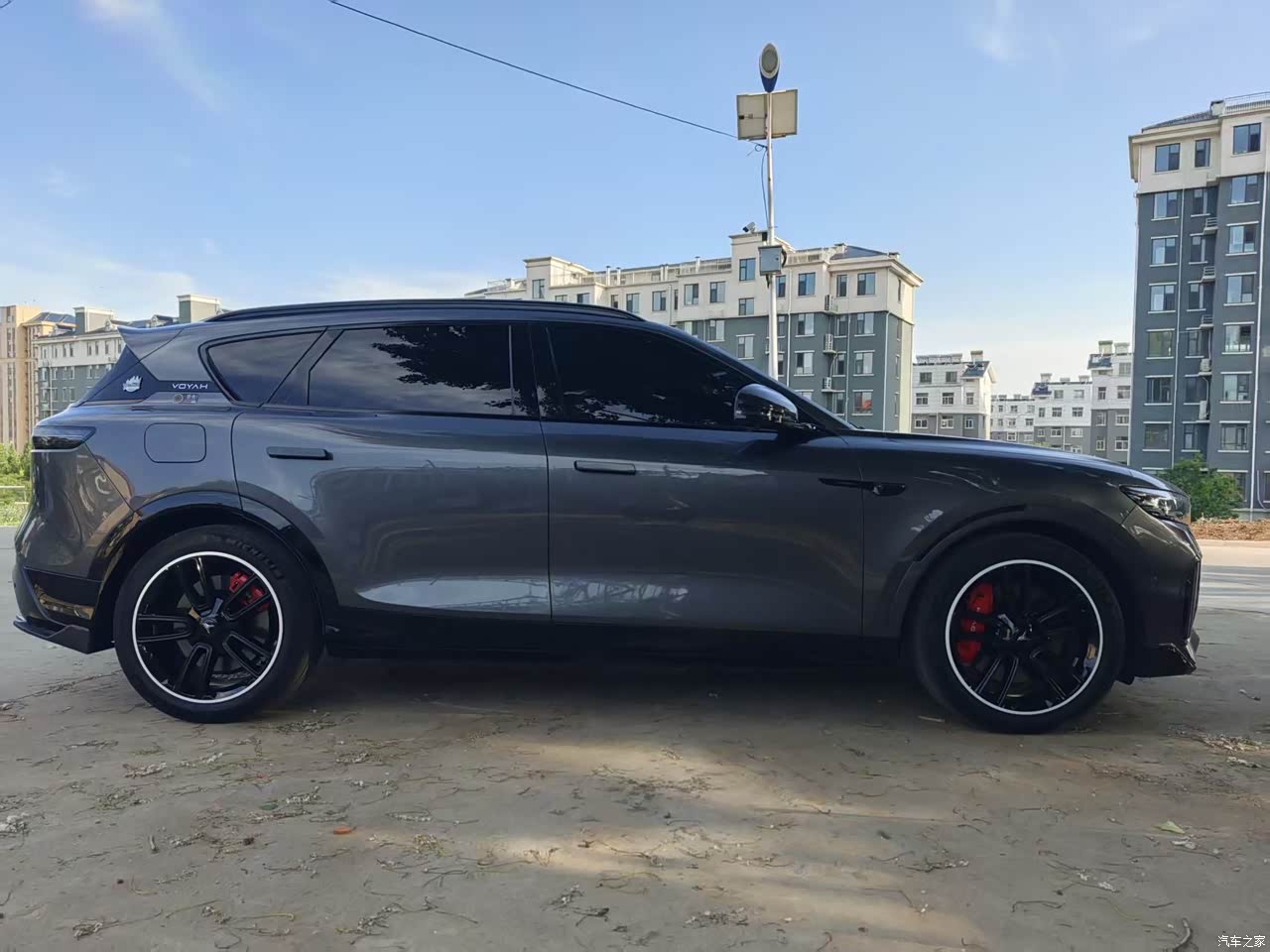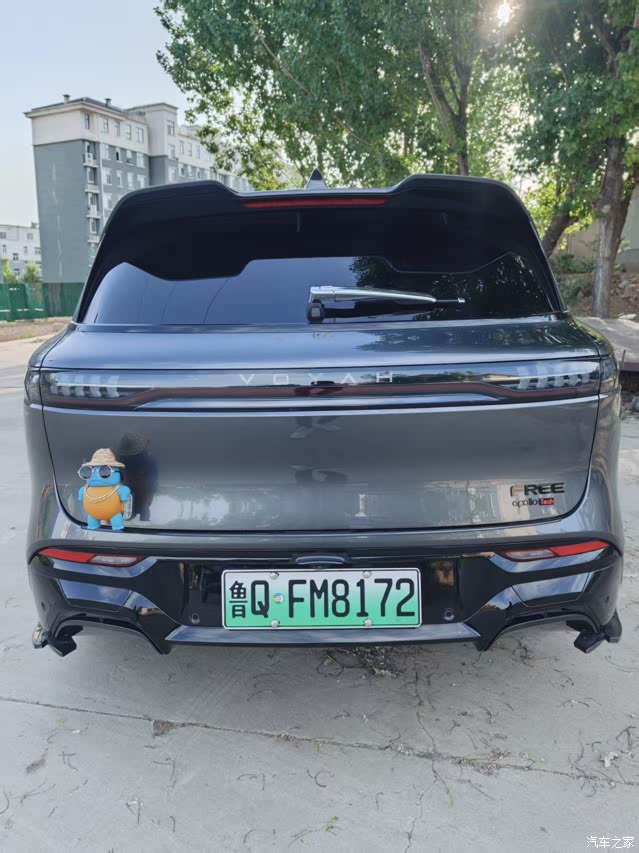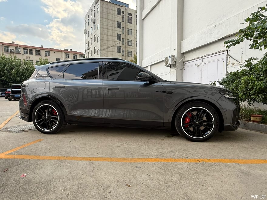 岚图FREE 318我被它的机甲风外观吸引了。钛晶灰的车身配上红色四活塞运动卡钳,强烈的撞色设计特别吸睛。车头扁平的熏黑中网进气格栅,配上贯穿式灯带,晚上点亮后辨识度极高。溜背式造型让车身看起来修长流畅,尾部上翘的尾翼不仅增加了高速稳定性,还让整车更有运动感。20英寸的全黑星环五辐轮圈,搭配米其林静音轮胎,颜值和实用性兼备。