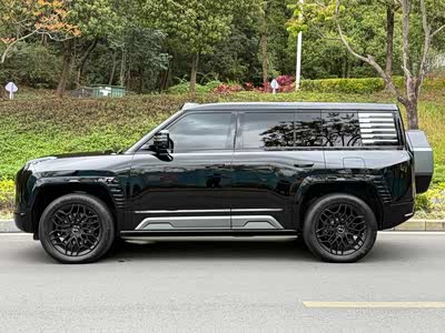 外观设计上,车身侧面的线条硬朗且富有力量感,勾勒出非常大气的轮廓。配合较高的离地间隙,整车姿态显得非常稳重,符合其旗舰级越野SUV的定位。