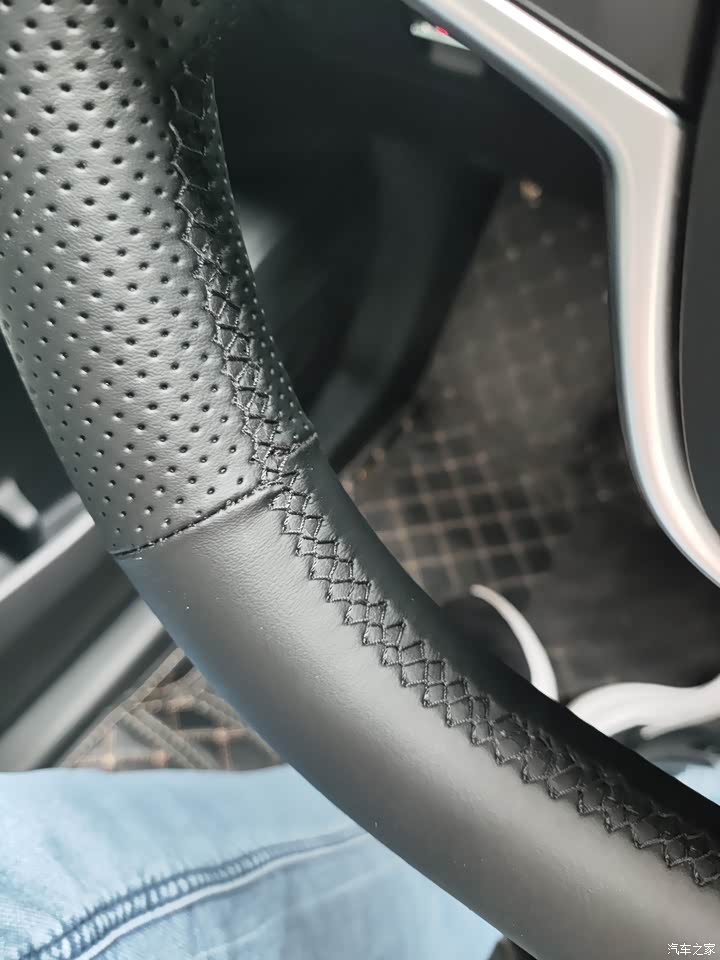 最不满意的就是这个塑料方向盘,太掉档次了。本人实在受不了,自己动手缝制了真皮方向盘,质感好太多啦。摸起来宛如原装。