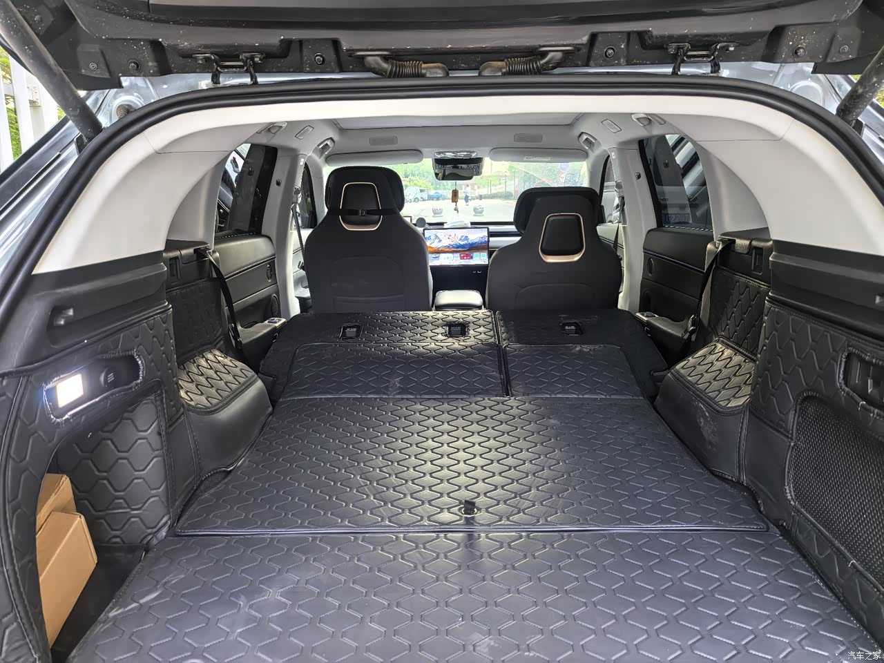 内空间毋庸置疑,近5米车长2米的车宽,3米轴距,不管前排还是后排都能给你不错的空间感受。后备箱储物空间也很优秀,喜欢露营的朋友后备箱放倒以后就可以变成1.5*1.9米的床车,亲测后备箱整体承重性和车内高度还是不错的。