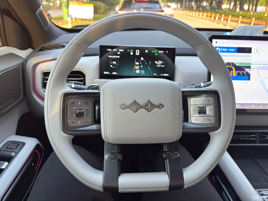 内饰方面采用了大量软包,座椅也很舒服,支撑性很强。我选的白色内饰,真的很好看。方程豹祖传的档把也得到了保留,可惜的是取消了升降功能。