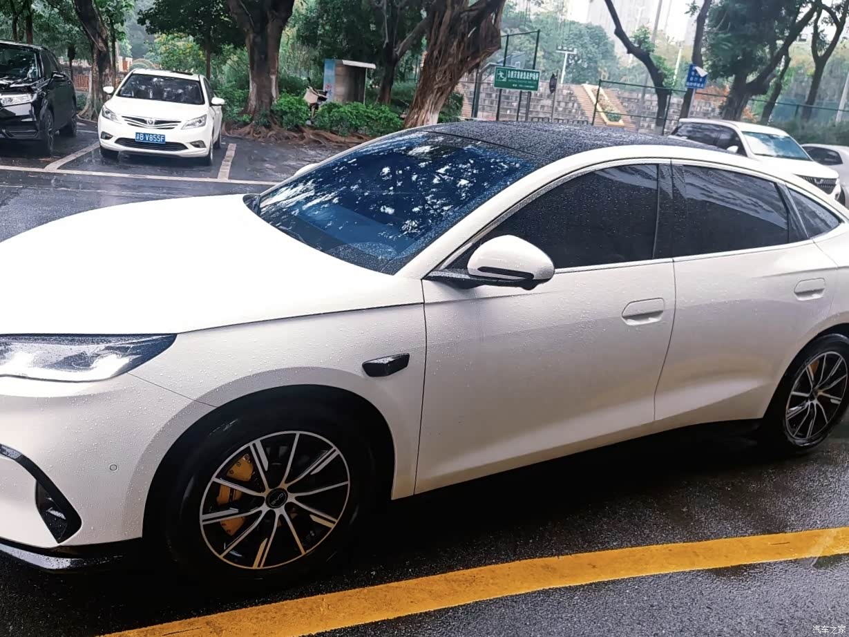 我的配置:120km的次顶配 用电跑为主,只加了一次油 通勤20km(市区郊区道路都有)目前实测下来大概耗电13%,感觉续航还是比较不错的 优点:驾驶体验好,用电跑噪音小,360+自动驻车开的很舒适,基本什么道路都能适应;用油跑很省油(但是发动机会吵一点),混动没有充电焦虑,但是会变的不舍的用油! 小缺点(不影响整体舒适度):自动灯光系统只要是稍微暗一点就开,关自动的话会提醒;侧方来车提醒可能会有一点点不够灵敏,会出现有车在旁边但是小三角没闪烁的情况;暖烟茶色好看但下雨天还是稍微有一些不耐脏;底盘比较低,道路情况不好一定要慢点开 顺便说一下,我的膜是比亚迪原厂膜,因为我怕不美观所以没切角,实际体验他这个膜在环境很暗的地方(地下车库、没路灯的地方)不是特别看得清,但总体我还是挺满意