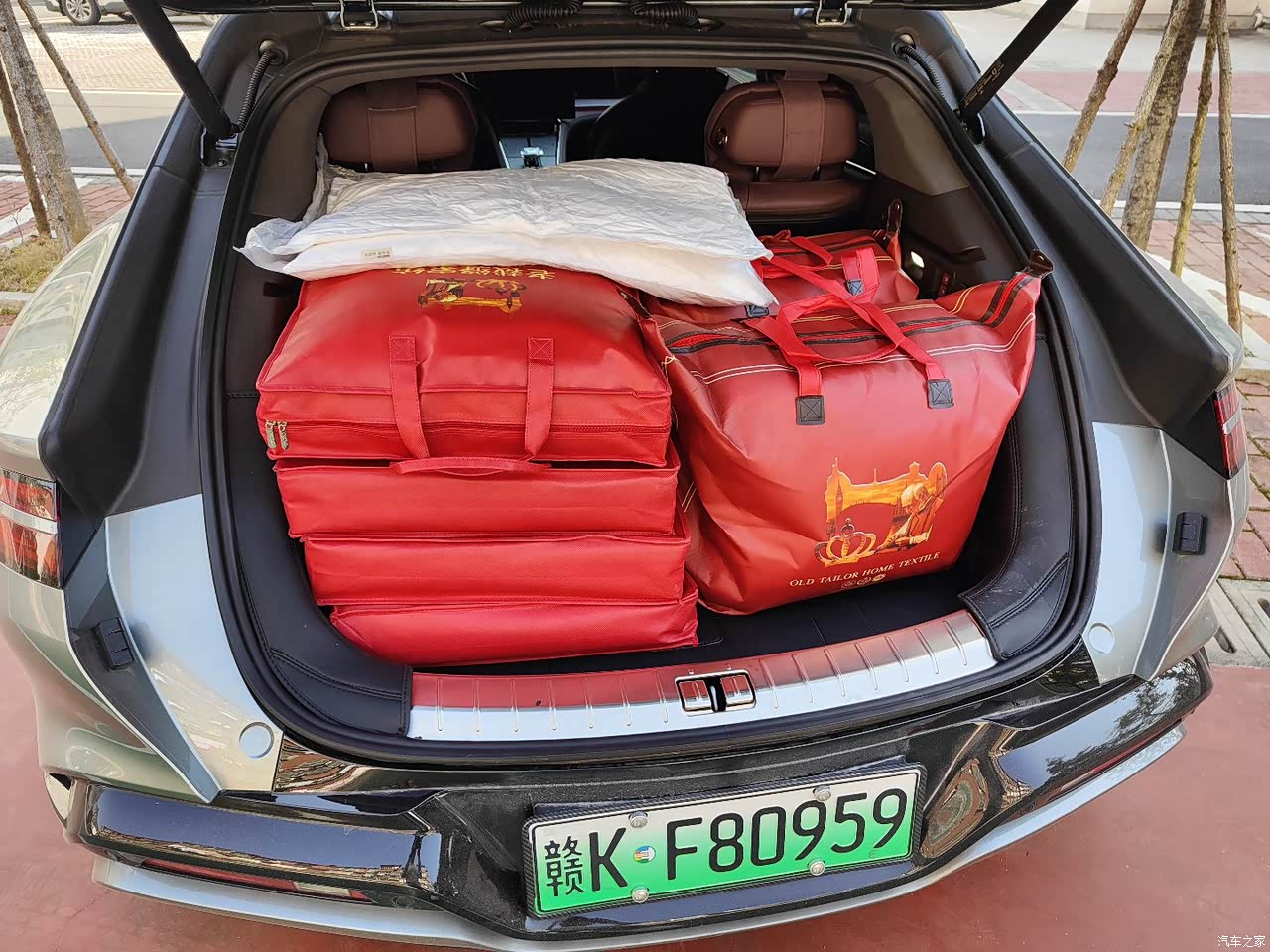 尽管受后轮转向系统及悬挂布局影响,后备箱空间略有压缩,但常规状态下仍可容纳2个28寸行李箱或多个标准尺寸行李包。搬家的时候实际塞了一下,日常家庭出行、短途旅行什么的,后备箱空间需求基本能满足,而且我是双冰箱的版本,放倒上确实有些不方便,但是实开1万公里以来,暂时还没有用到需要放倒的情况,这点看个人,仁者见仁智者见智,如果有放倒需求的,可以选择去冰箱版本。