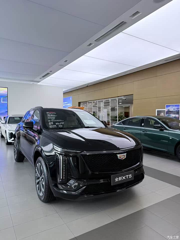 全新XT5延续凯迪拉克标志性钻石切割设计,熏黑网状盾形格栅与分体式LED闪电大灯组气场全开,星瀑日行灯延伸至引擎盖,夜间辨识度拉满。20英寸曜黑轮毂搭配立体腰线,尾部直列飞翼尾灯与双边双出排气,既保留美式肌肉感,又融入都市精致气息,堪称“西装暴徒”。