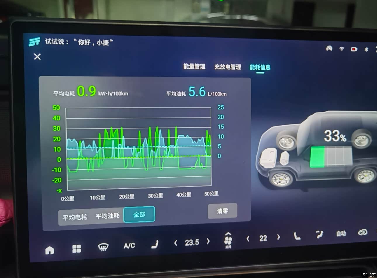 整体来说比较稳定100㎞,在夏季和冬季相差不多,整体来说感觉比较满意满足通勤需求,可以强制保电,在20-30左右电量开市内混动模式 中能量回收是最省的,亲测