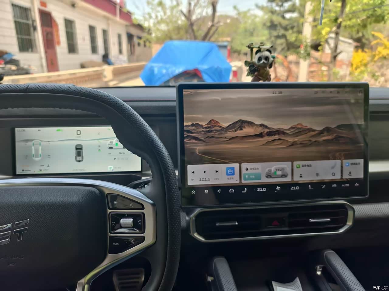 关于车内,从网上买了个方向盘套,挺好看然后又能保护方向盘,手感也舒服多了。 屏幕的话看起来还是比较中规中矩的不想有些真的很大, 门边的雨伞槽设计也是可以下雨了放个雨伞可以不用考虑那么多哪里会打湿,下雨天很方便。