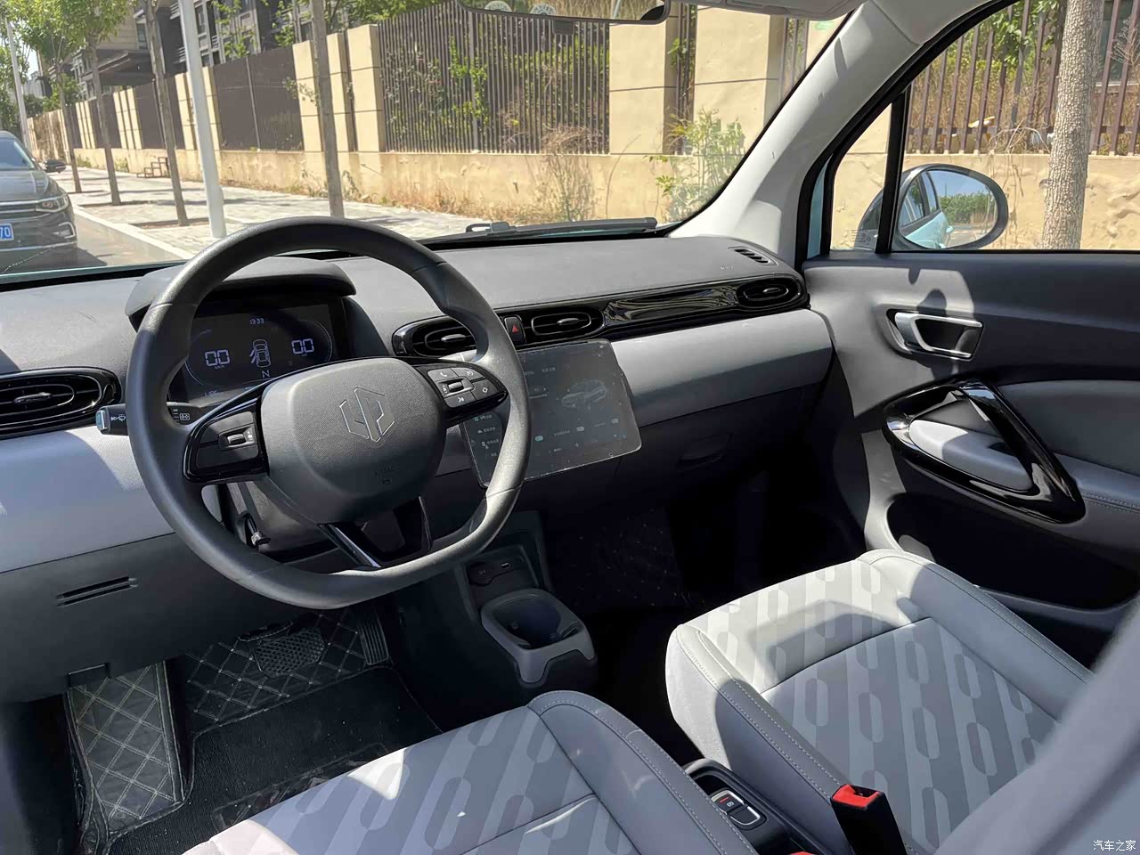 它是一款微型车,车内空间设计前排车顶设计的高,座椅前后间距宽,能够享受到足够的头部、腿部活动范围与舒适的坐姿体验!后排相对拥挤一些吧。此外后备厢容积也不是很大。