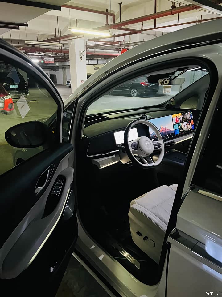 内饰设计过于简约,配色和材质选择比较保守,缺乏年轻感和豪华感,与外观的设计风格有些脱节。10.25英寸液晶仪表+29英寸AR-HUD增强现实抬头显示,让驾驶员能清晰获取车辆信息。15.4英寸中控屏和同尺寸副驾娱乐屏,非常理想化。虽然中控台和座椅采用了软质材料,但车内部分细节处的塑料感还是比较明显,整体给我的感觉过于简约,甚至对比同价位的腾势D9的内饰,可以说的上简陋了。不像这个级别的该有的样子。