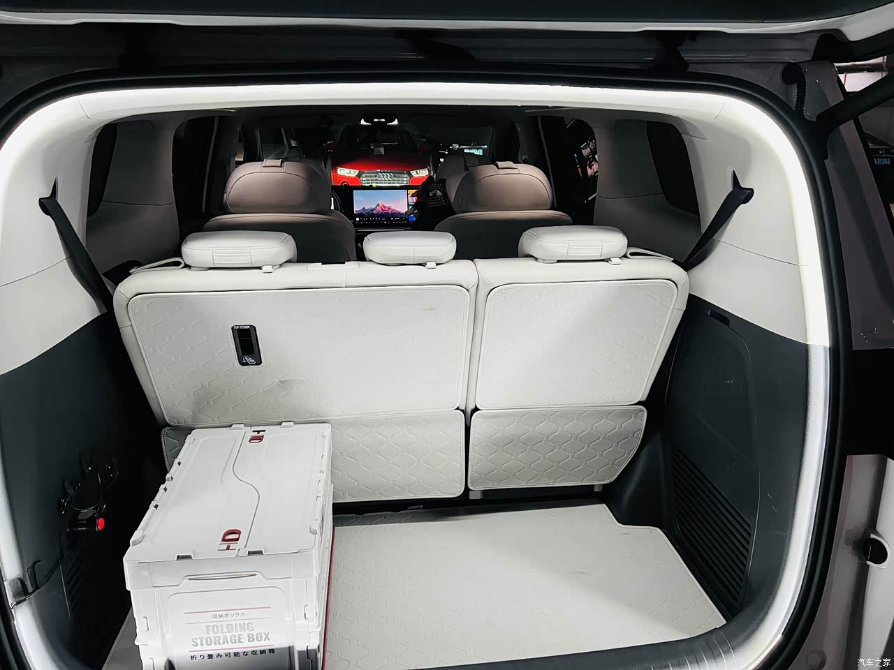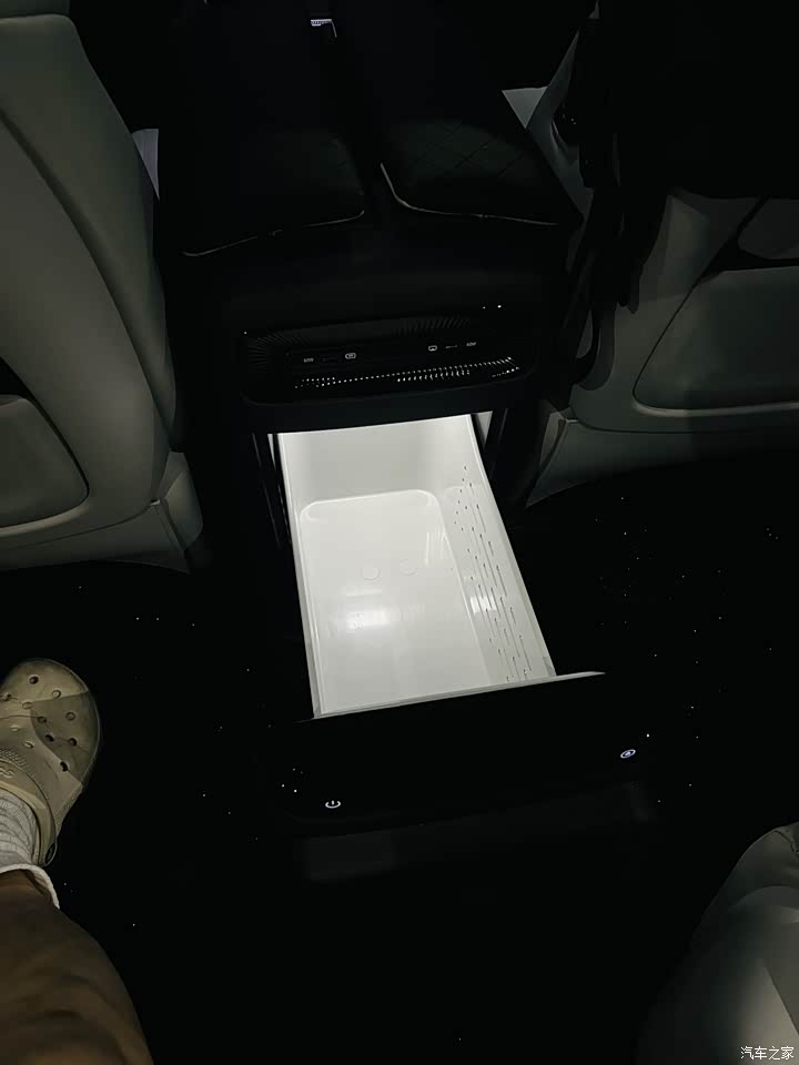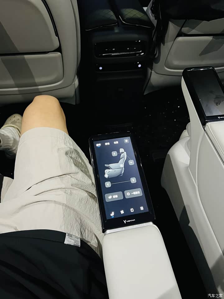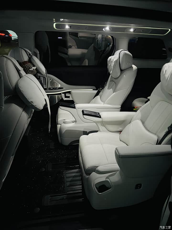 车内空间是这台车的最大亮点。第二排座椅支持前后,靠背,腿托调节,前两排座椅还都有通风,加热,按摩功能,第三排座椅可以放倒,后备箱空间灵活多变。第三排座椅还支持前后移动,在调到最后还能跷二郎腿,储物空间设计得很人性化,中控台下方有开放式储物格,门板上的储物槽也能放下矿泉水瓶雨伞等一些杂物。后备箱在满员状态下空间有限,如果带的行李较多,可能需要牺牲部分第三排腿部空间。